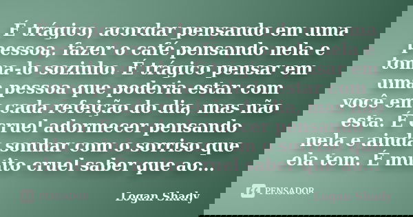 É trágico, acordar pensando em uma... Logan Shady