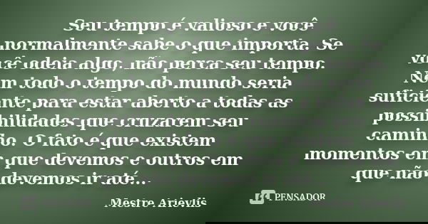 Seu tempo é valioso e você normalmente... Mestre Ariévlis