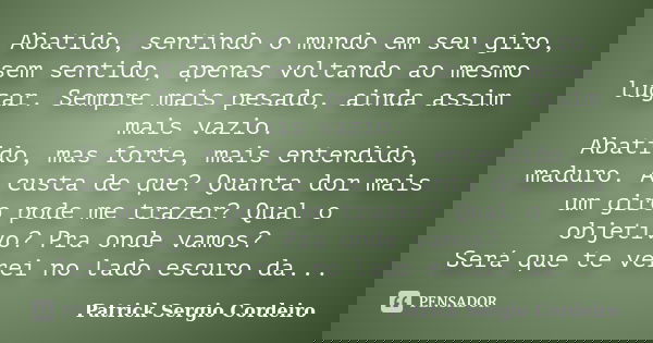 Abatido, sentindo o mundo em seu giro,... Patrick Sergio Cordeiro