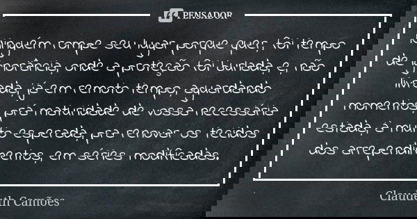 Ninguém rompe seu lugar porque quer,... Claudeth Camões