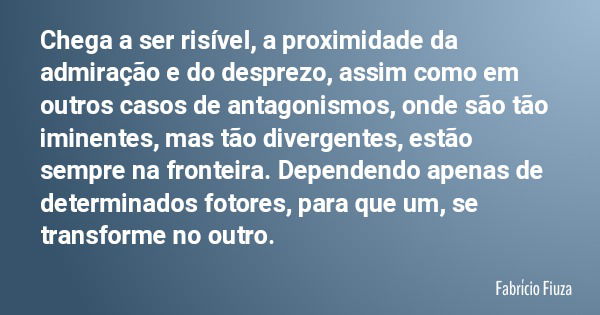 Chega a ser risível, a proximidade da admiração e do desprezo, assim como em outros casos de antagonismos, onde são tão iminentes, mas tão divergentes, estão sempre na fronteira. Dependendo apenas de determinados fotores, para que um, se transforme no outro.