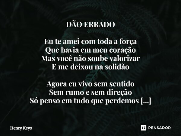 DÃO ERRADO Eu te amei com toda a... Henry Keys