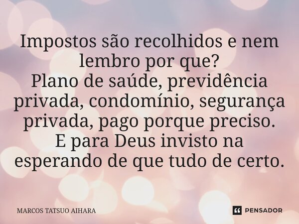 Impostos são recolhidos e nem lembro... MARCOS TATSUO AIHARA