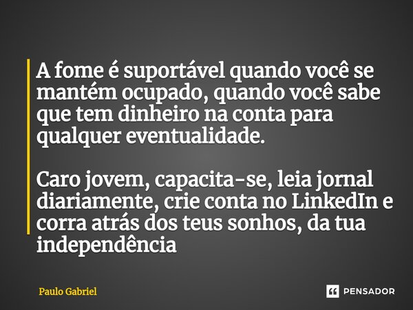 Caro jovem, capacita-se, leia jornal diariamente, crie conta no LinkedIn e corra atrás dos teus sonhos, da tua independência
