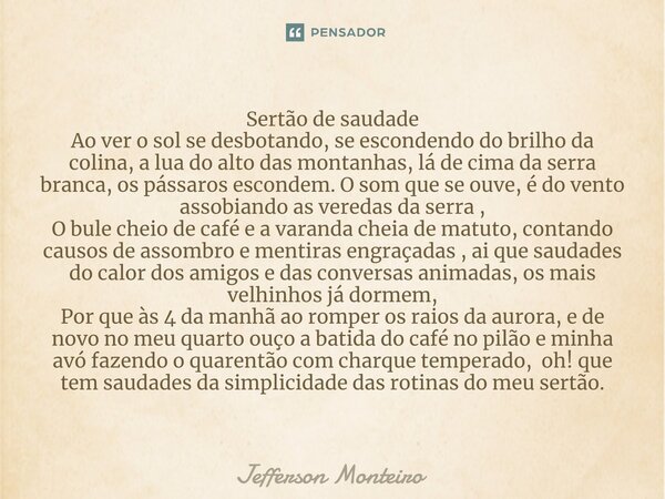 Sertão de saudade Ao ver o sol se... Jefferson monteiro