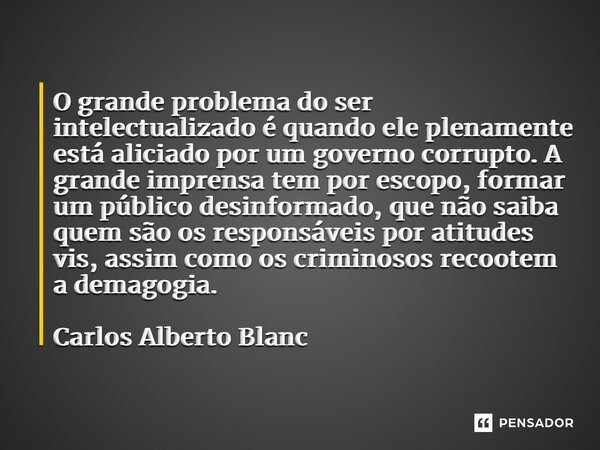 O grande problema do ser intelectualizado é quando ele plenamente está aliciado por um governo corrupto. A grande imprensa tem por escopo, formar um público desinformado, que não saiba quem são os responsáveis por atitudes vis, assim como os criminosos recorrem à demagogia.