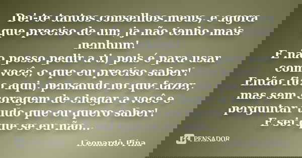 Dei-te tantos conselhos meus, e agora que preciso de um, ja não tenho mais nenhum!