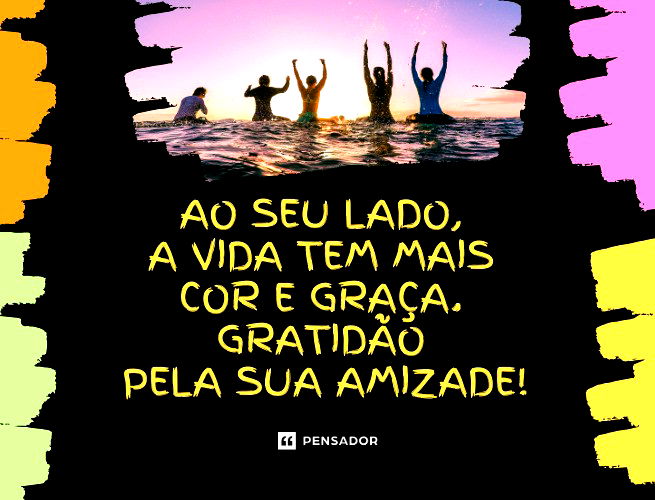 Ao seu lado, a vida tem mais cor e graça. Gratidão pela sua amizade!