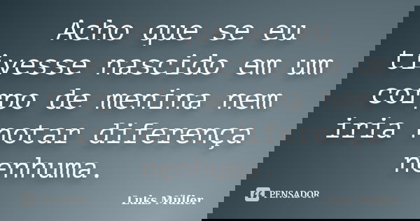 Acho que se eu tivesse nascido em um corpo de menina nem iria notar diferença nenhuma.