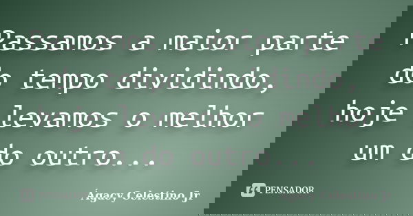 Passamos a maior parte do tempo dividindo, hoje levamos o melhor um do outro...