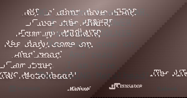 NO, i dont have FEAR, I use the POWER, From my MJÖLNIR, Yes baby,come on, And read, I am true, The VIKING Metalhead!