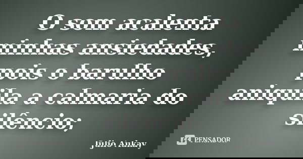 O som acalenta minhas ansiedades, pois o barulho aniquila a calmaria do silêncio;