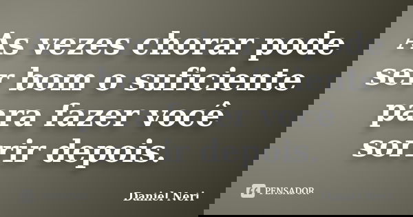As vezes chorar pode ser bom o suficiente para fazer você sorrir depois.