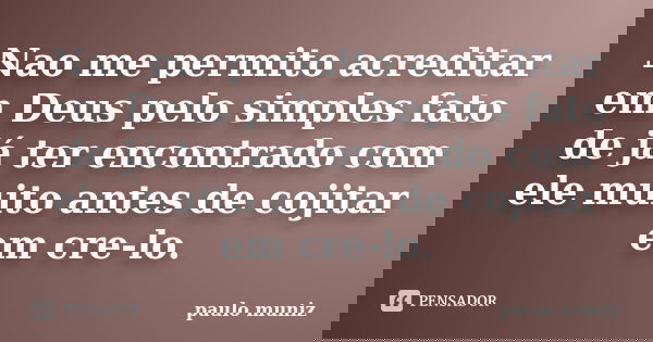 Nao me permito acreditar em Deus pelo simples fato de já ter encontrado com ele muito antes de cojitar em cre-lo.