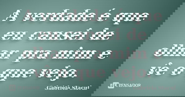 A verdade é que eu cansei de olhar pra mim e vê o que vejo.