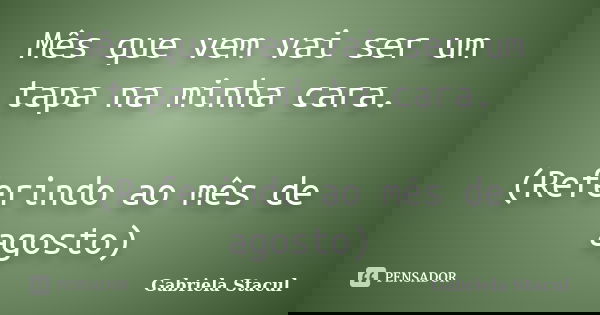 Mês que vem vai ser um tapa na minha cara. (Referindo ao mês de agosto)