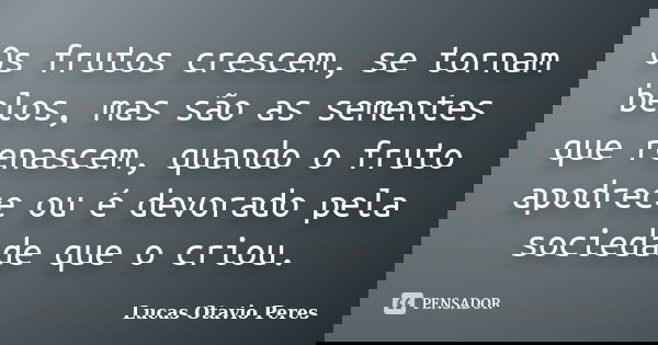 Os frutos crescem, se tornam belos, mas são as sementes que renascem, quando o fruto apodrece ou é devorado pela sociedade que o criou.