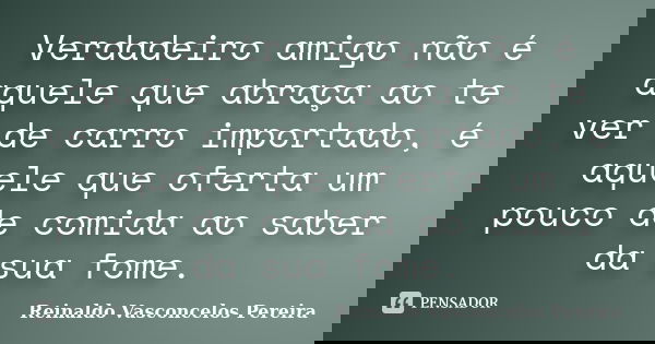 Verdadeiro amigo não é aquele que abraça ao te ver de carro importado, é aquele que oferta um pouco de comida ao saber da sua fome.