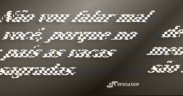 Não vou falar mal de você, porque no meu país as vacas são sagradas.