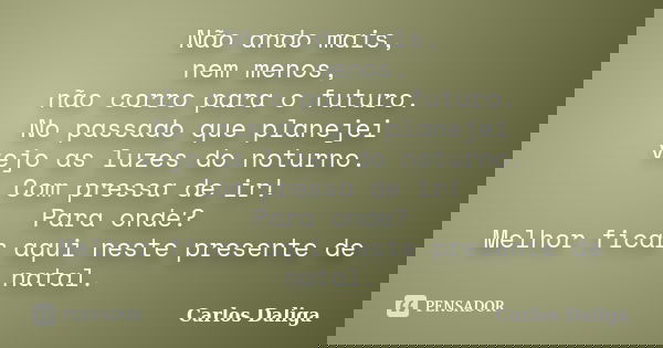 Não ando mais, nem menos, não corro para o futuro. No passado que planejei vejo as luzes do noturno. Com pressa de ir! Para onde? Melhor ficar aqui neste presente de natal.