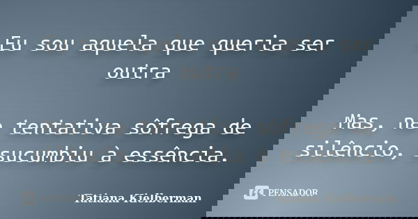 Eu sou aquela que queria ser outra Mas, na tentativa sôfrega de silêncio, sucumbiu à essência.