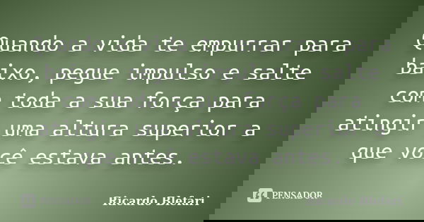 Quando a vida te empurrar para baixo, pegue impulso e salte com toda a sua força para atingir uma altura superior a que você estava antes.
