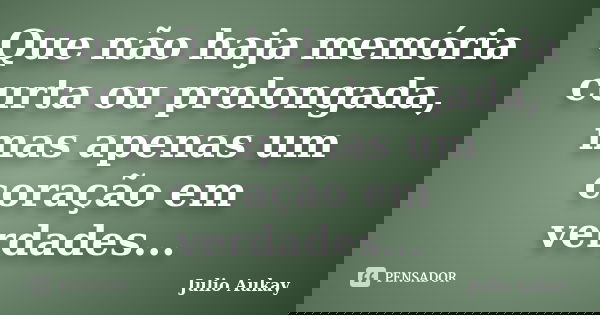 Que não haja memória curta ou prolongada, mas apenas um coração em verdades...
