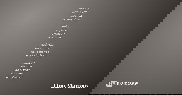 namora me vira aponta e deflora volta me gira enrola e adora melhora não pira me afronta e sai fora agora remonta não tira desconta e devora