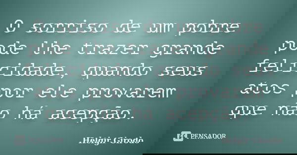 O sorriso de um pobre pode lhe trazer grande felicidade, quando seus atos por ele provarem que não há acepção.