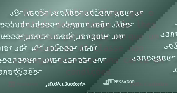 Os mais velhos dizem que o estudo desse tempo não lhes convesse para nada porque um aluno da 4ª classe não consegue escrever uma carta em condições