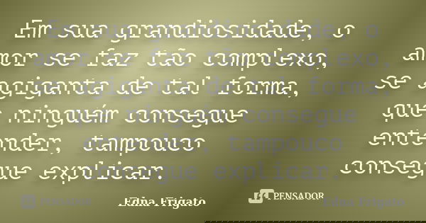 Em sua grandiosidade, o amor se faz tão complexo, se agiganta de tal forma, que ninguém consegue entender, tampouco consegue explicar.