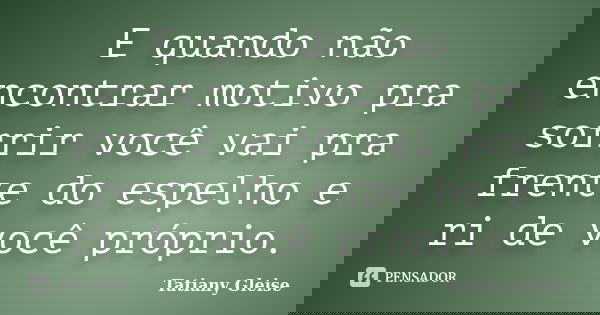 E quando não encontrar motivo pra sorrir você vai pra frente do espelho e ri de você próprio.