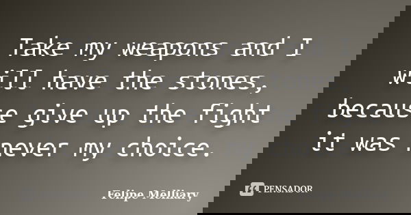 Take my weapons and I will have the stones, because give up the fight it was never my choice.