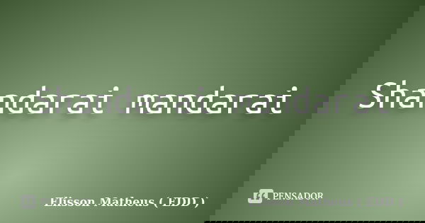 Shandarai mandarai... Frase de Elisson Matheus ( EDD ).