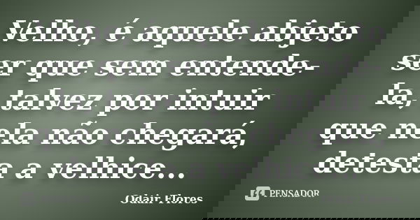 Velho, é aquele abjeto ser que sem entende-la, talvez por intuir que nela não chegará, detesta a velhice...