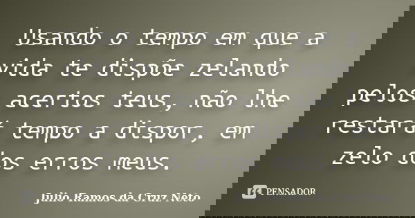 Usando o tempo em que a vida te dispõe zelando pelos acertos teus, não lhe restará tempo a dispor, em zelo dos erros meus.
