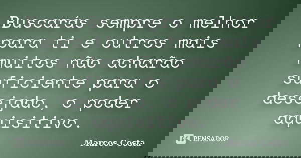 Buscarás sempre o melhor para ti e outros mais muitos não acharão suficiente para o desejado, o poder aquisitivo.