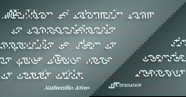 Melhor é dormir com a consciência tranquila e ter a certeza que Deus nos renova a cada dia.... Frase de Valberilha Alves.