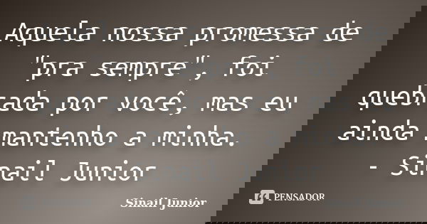 Aquela nossa promessa de "pra sempre", foi quebrada por você, mas eu ainda mantenho a minha. - Sinail Junior