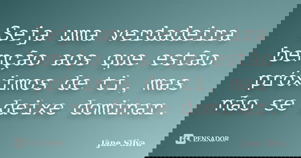 Seja uma verdadeira benção aos que estão próximos de ti, mas não se deixe dominar.