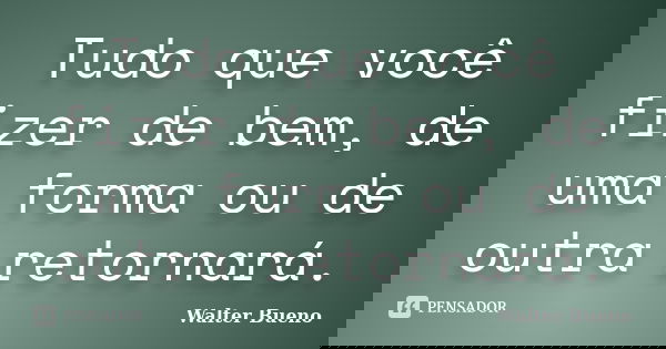 Tudo que você fizer de bem, de uma forma ou de outra retornará.