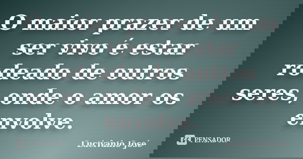 O maior prazer de um ser vivo é estar rodeado de outros seres, onde o amor os envolve.