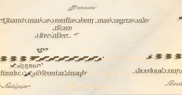 ☛❝Quanto mais as ovelhas leem, mais negras elas ficam. Ouvi dizer...❞ ❝✪❞ ◣◥◣◥◣◥◣◥◣◥◣◥◣◥◤◢◤◢◤◢◤◢◤◢◤◢◤◢ ❖ ∂ιηηнσ¹ facebook.com/dinnho.1 ◕ @PereiraLimadp