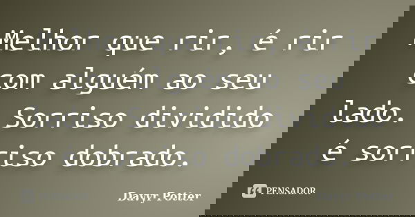 Melhor que rir, é rir com alguém ao seu lado. Sorriso dividido é sorriso dobrado.