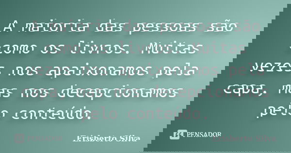 A maioria das pessoas são como os livros. Muitas vezes nos apaixonamos pela capa, mas nos decepcionamos pelo conteúdo.