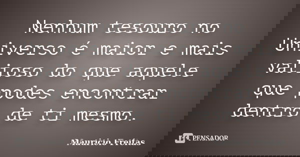 Nenhum tesouro no Universo é maior e mais valioso do que aquele que podes encontrar dentro de ti mesmo.