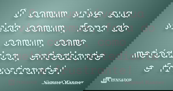 O comum vive sua vida comum, fora do comum, como metódica, entediante e frustrante!