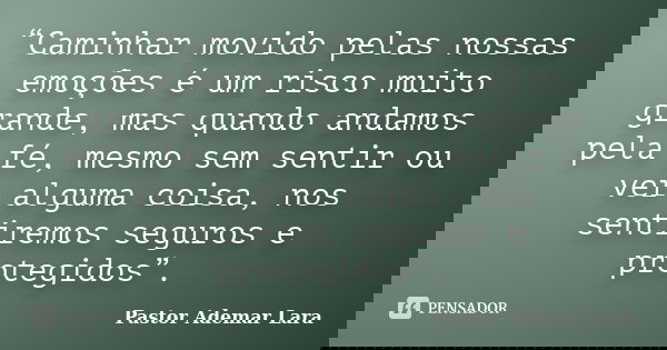 “Caminhar movido pelas nossas emoções é um risco muito grande, mas quando andamos pela fé, mesmo sem sentir ou ver alguma coisa, nos sentiremos seguros e protegidos”.