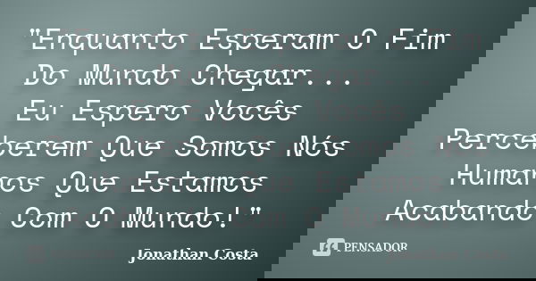 "Enquanto Esperam O Fim Do Mundo Chegar... Eu Espero Vocês Perceberem Que Somos Nós Humanos Que Estamos Acabando Com O Mundo!"
