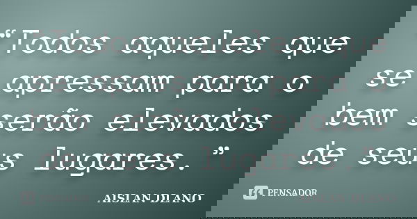 “Todos aqueles que se apressam para o bem serão elevados de seus lugares.”